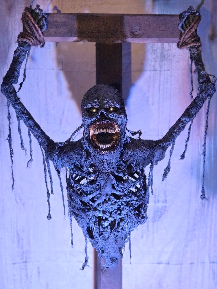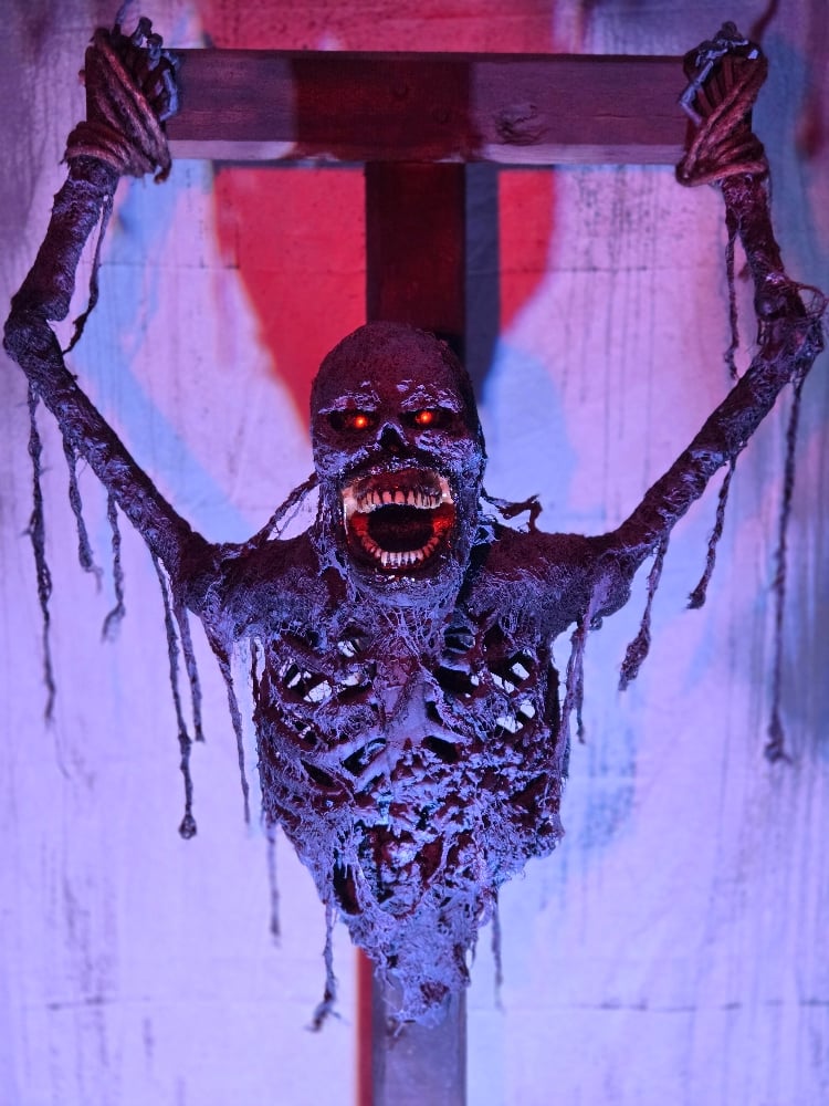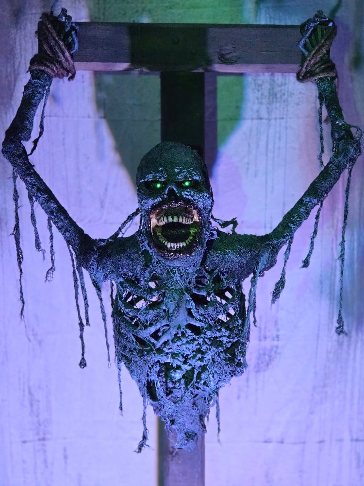 Our best selling Strung out Corpse is now available in fully pneumatic Bound Thrasher. Complete with air lines, solenoids, air regulator, pneumatic cylinders, pre programmed controller with audio and motion sensor. compressor and speaker required. Shipping billed when product complete. $40- $100 average depending on zipcode. email for shipping quote [email protected]